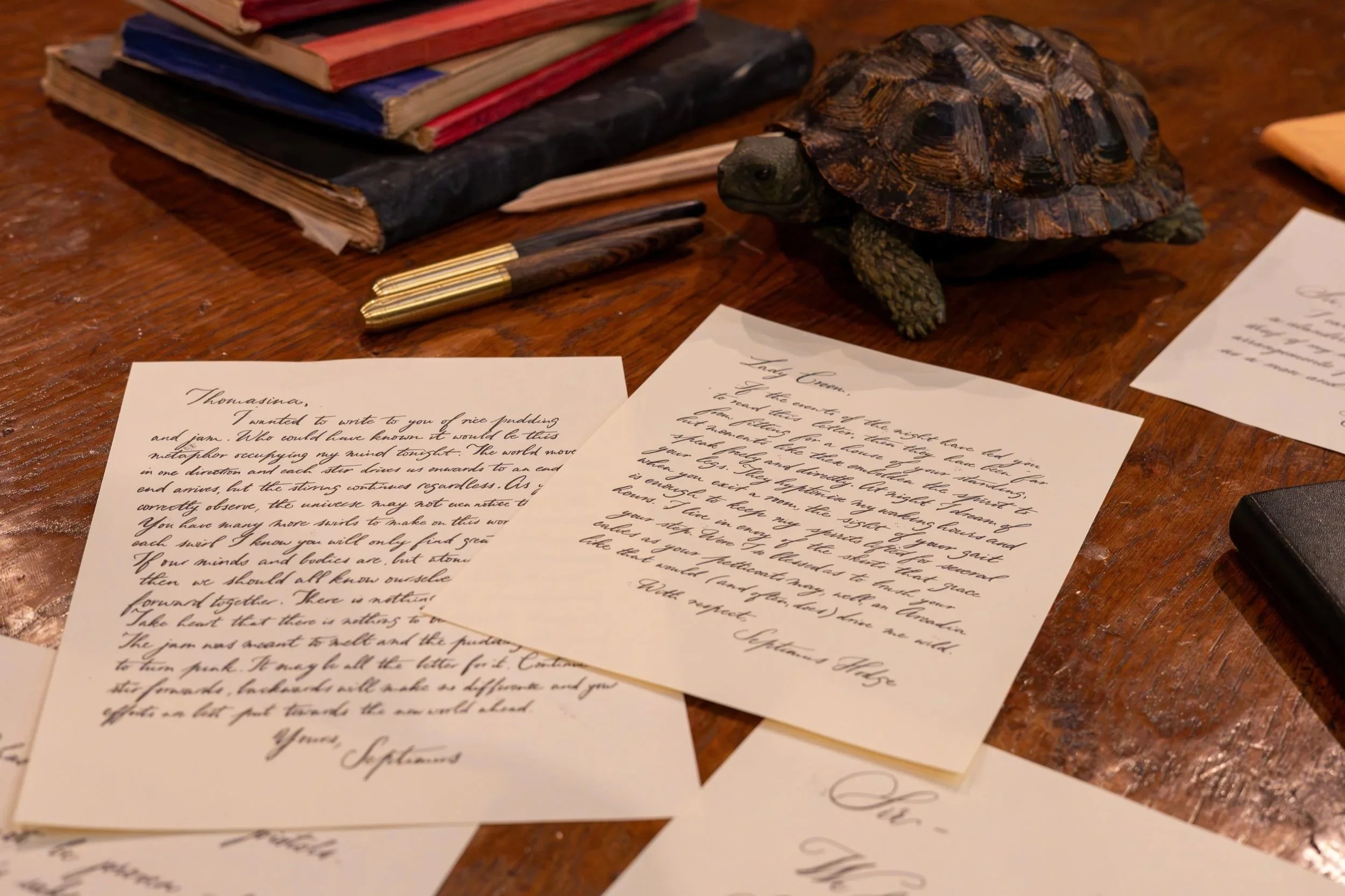 Correspondence between key characters in Tom Stoppard’s play ARCADIA, presented at the Old Vic Theatre 2025/ 2026. Letters were written in different historically accurate hands in digital form and were pivotal props for the storytelling throughout, re-printed when required.